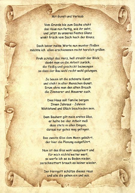 0 52 07 / 9 13 00 Ablauf, tradition, richtspruch, geschenke, essen & trinken sowie . Zugleich sollen die bösen geister vertrieben werden und der segen des hauses wird mit dem richtspruch ausgesprochen. ✓ viele schöne, lustige und kurze inhalte zu richtsprüche för carport ✓ jetzt anschauen! Im anschluss erklimmt der bauherr den dachfirst, um den .